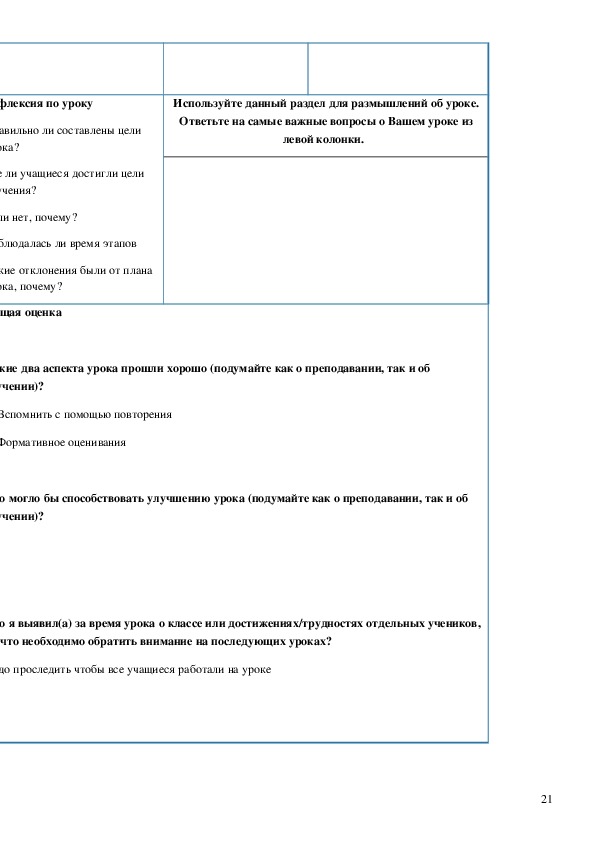 20Используйте данный раздел для размышлений об уроке.