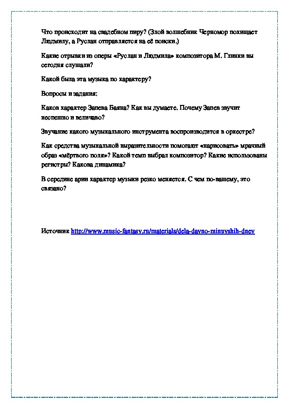 Ария Руслана как важный драматургический номер оперы: изменение состояний от мрачного до победного, решительного.в материале представлены - вопросы и задания по теме