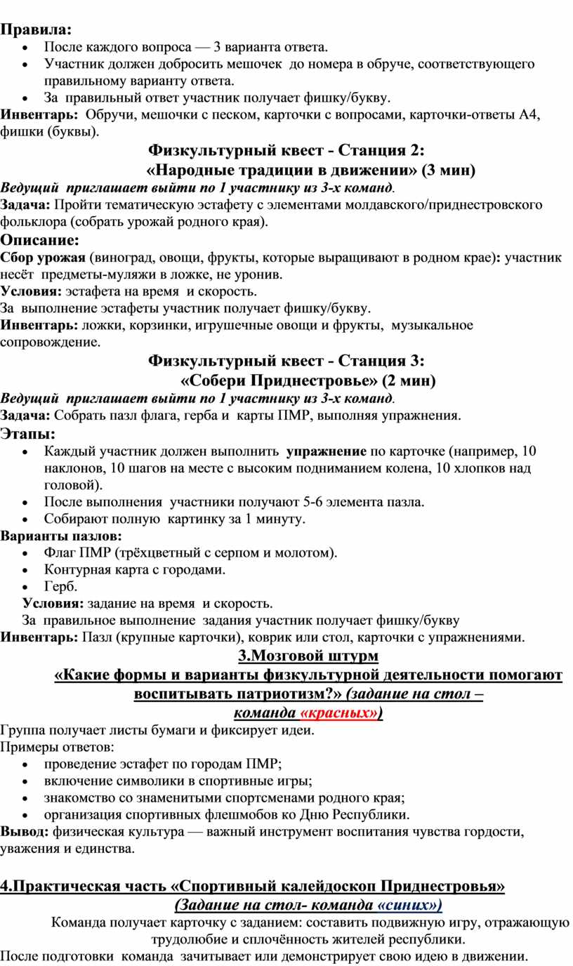 3. Через подвижную и интеллектуальную активность способствовать закреплению знаний о Приднестровье, формированию командного духа и развитию физической активности.