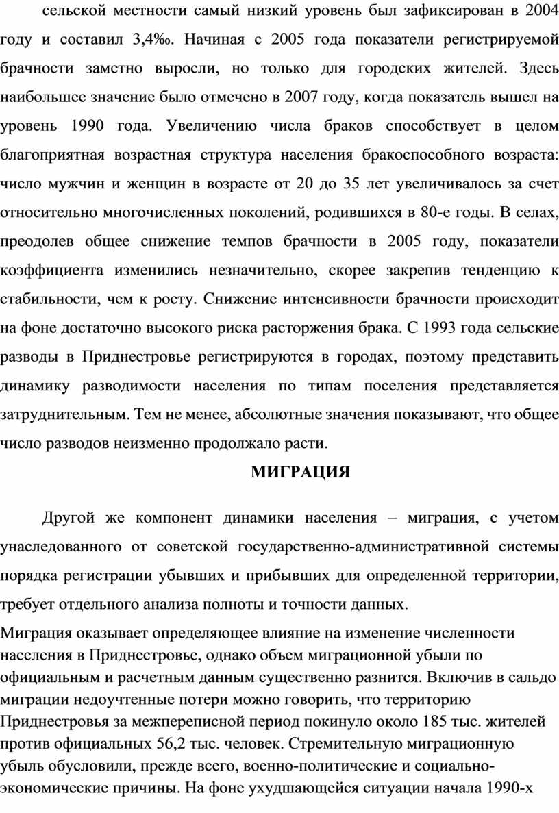 Другой же компонент динамики населения – миграция, с учетом унаследованного от советской государственно-административной системы порядка регистрации убывших и прибывших для определенной территории, требует отдельного анализа полноты и точности данных.