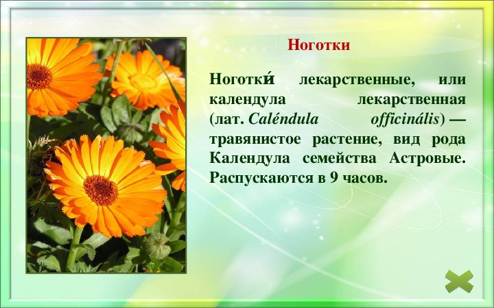 Распускаются в 9 часов.