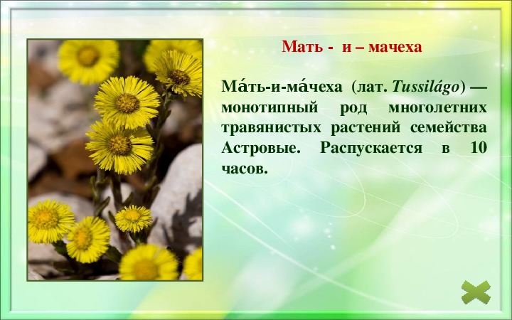 травянистых растений, цветки которых распускаются и