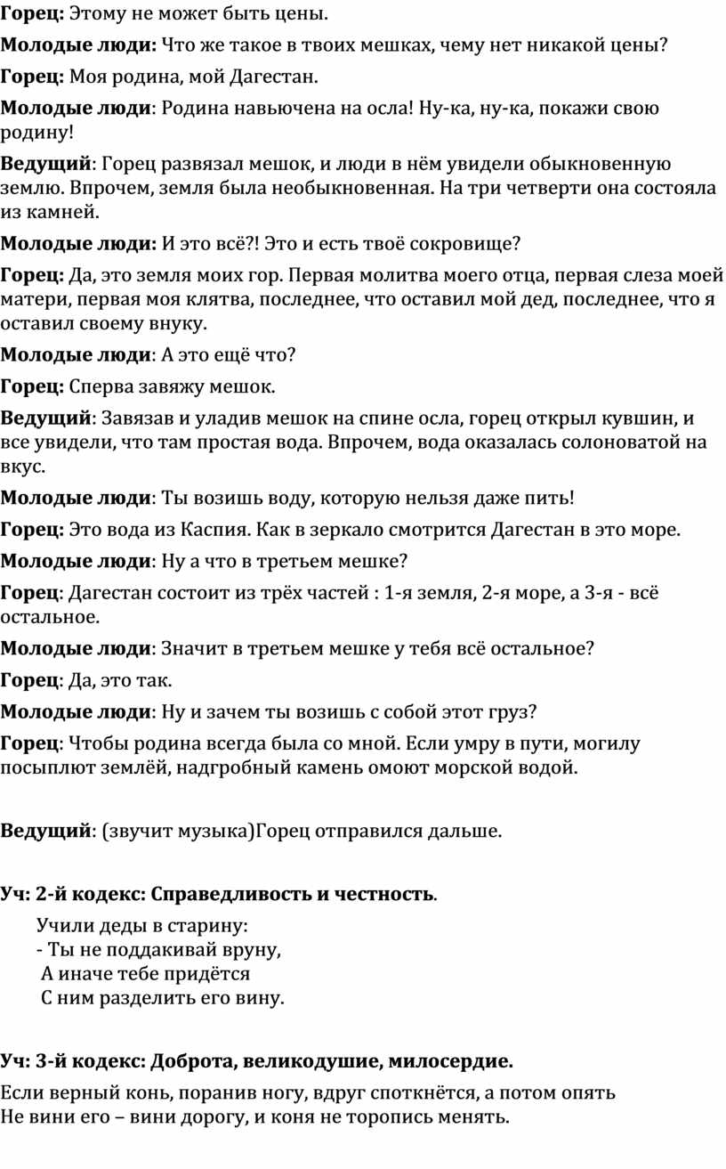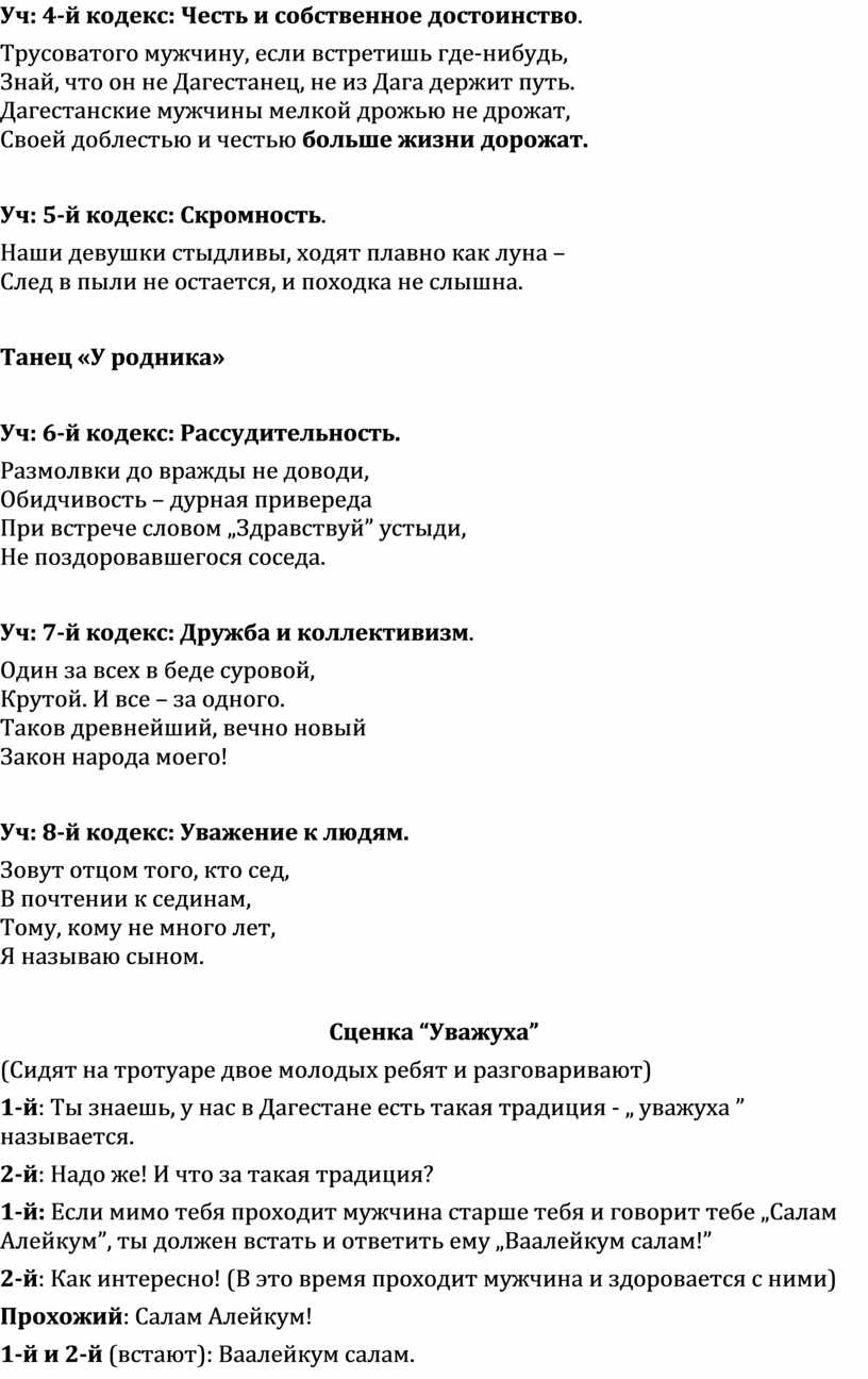 Вед 2: Многоязычен, многокрасочен Дагестан. Много разных обычаев сохраняют его народы. Есть у Дагестана и свой кодекс чести.