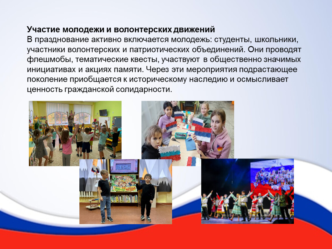 День народного единства подчеркивает важность гражданской ответственности, взаимопомощи и готовности действовать сообща в трудные времена. Он напоминает, что народное единство — не просто историческая память, а основа национальной стабильности и развития, что сила общества в его сплоченности перед вызовами, а уважение к общему прошлому формирует основу для общего будущего.