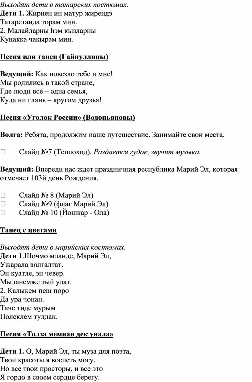 Ведущий: Впереди нас ждет праздничная республика Марий Эл, которая отмечает 103й день Рождения.