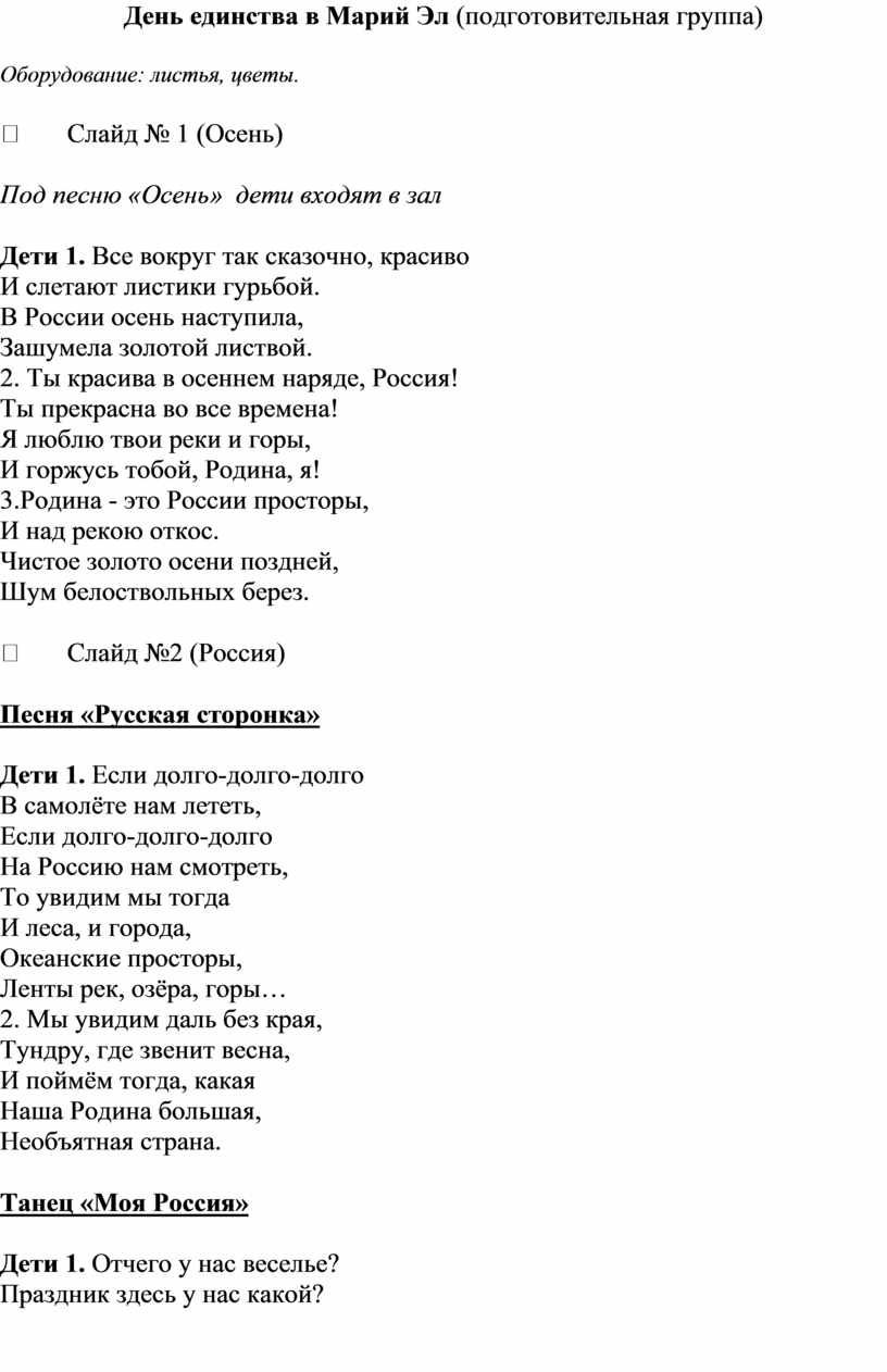 Ведущий: Россия единая, могучая, бескрайняя, гостеприимная – протягивает руку дружбы и раскрывает свои объятия всем народам, кто пожелает жить на земле мирно и счастливо.