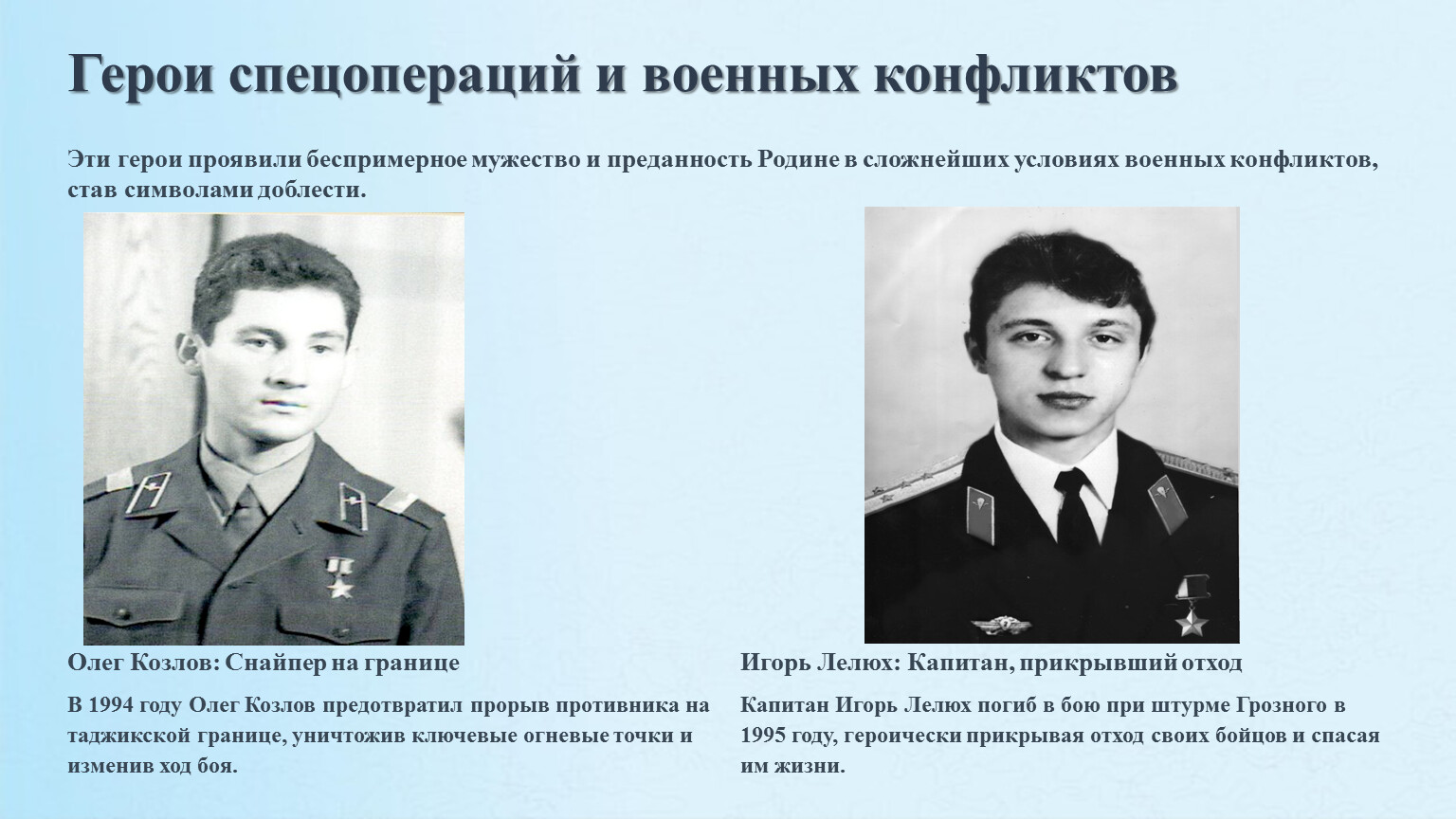 Эти герои проявили беспримерное мужество и преданность Родине в сложнейших условиях военных конфликтов, став символами доблести.