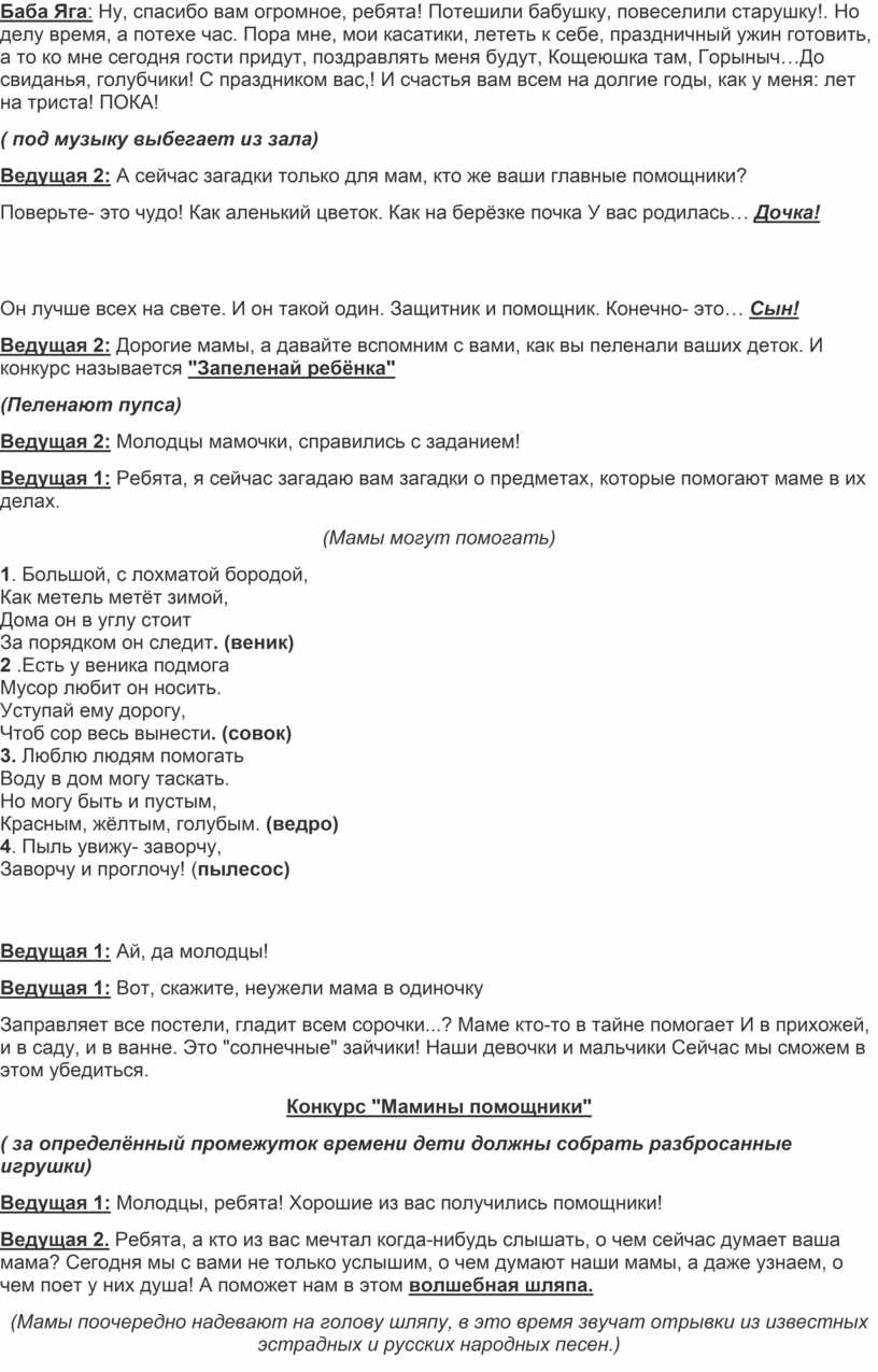 Ведущая 2: А сейчас загадки только для мам, кто же ваши главные помощники?