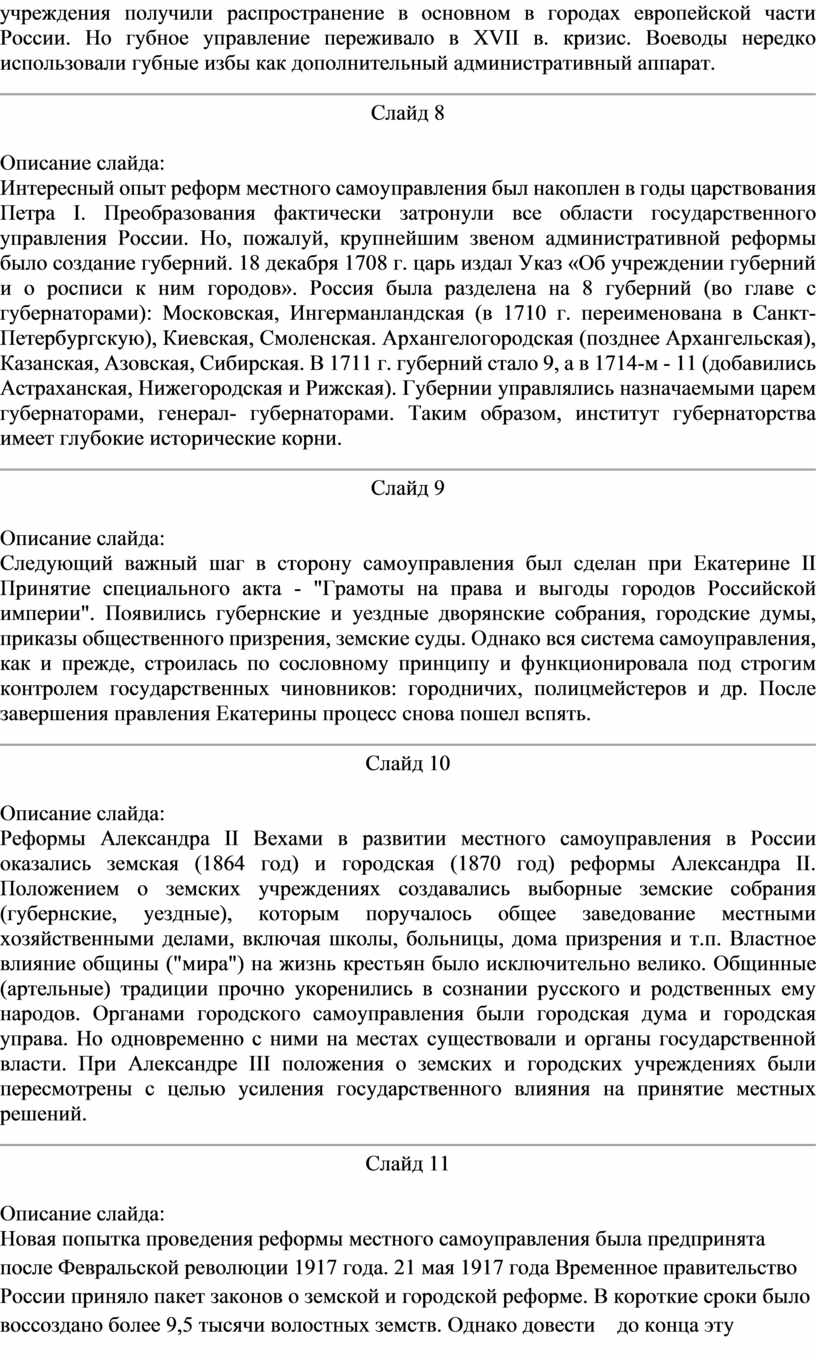 Со времен Ивана Грозного, уничтожившего в 1570 году Новгородскую и Псковскую республики, и вплоть до 1917 года в России господствовала жесткая система централизованного государственного управления, основанная на царской власти. Но и в этот период самоуправленческие тенденции в российской государственной системе то усиливались, то ослабевали. Со времен Ивана Грозного, уничтожившего в 1570 году Новгородскую и Псковскую республики, и вплоть до 1917 года в России господствовала жесткая система централизованного государственного управления, основанная на царской власти. Но и в этот период самоуправленческие тенденции в российской государственной системе то усиливались, то ослабевали.