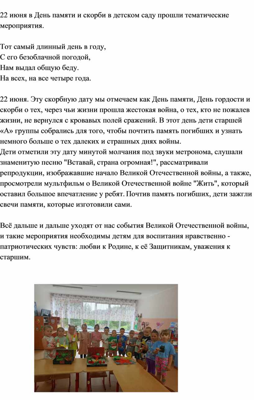 22 июня в День памяти и скорби в детском саду прошли тематические мероприятия.