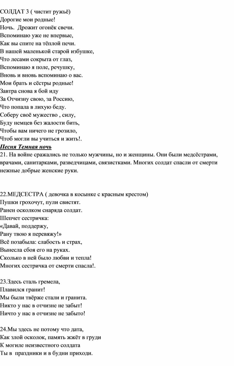 21. На войне сражались не только мужчины, но и женщины. Они были медсёстрами, врачами, санитарками, разведчицами, связистками. Многих солдат спасли от смерти нежные добрые женские руки.