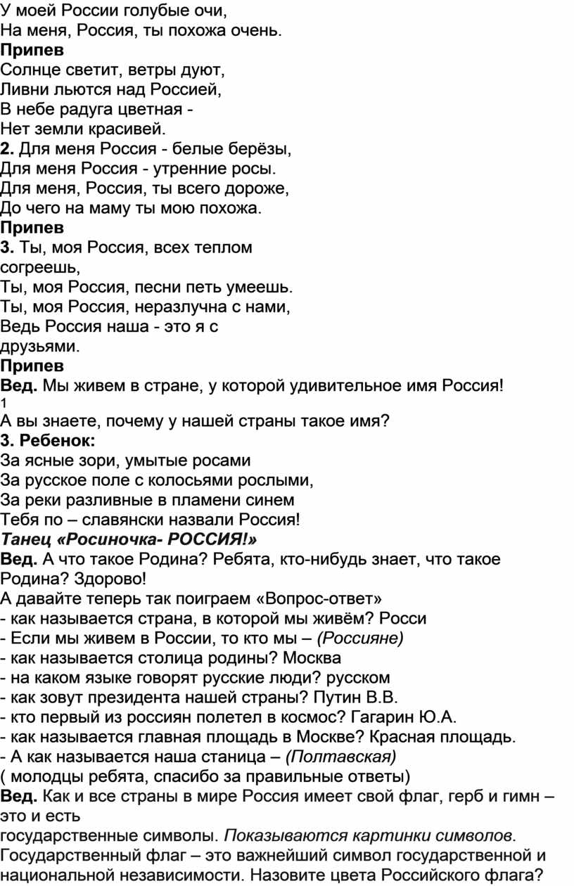 Вед. Мы живем в стране, у которой удивительное имя Россия!