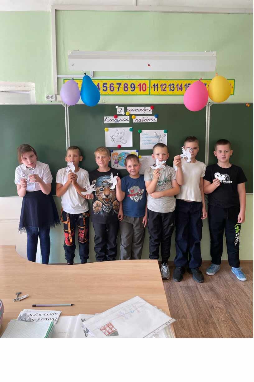 Также учащиеся приняли участие в областной акции, посвященной дню солидарности в борьбе с терроризмом «Голубь мира», которая была призвана показать, насколько важен мир для всей планеты. Учащимся была показана презентация по теме проекта, в которой рассказывается, почему голубь – птица мира, когда человек приручил голубя, как голубь помогал и помогает в жизни человека, а также об истории возникновения. А также изготовили своего бумажного белоснежного «Голубя Мира».