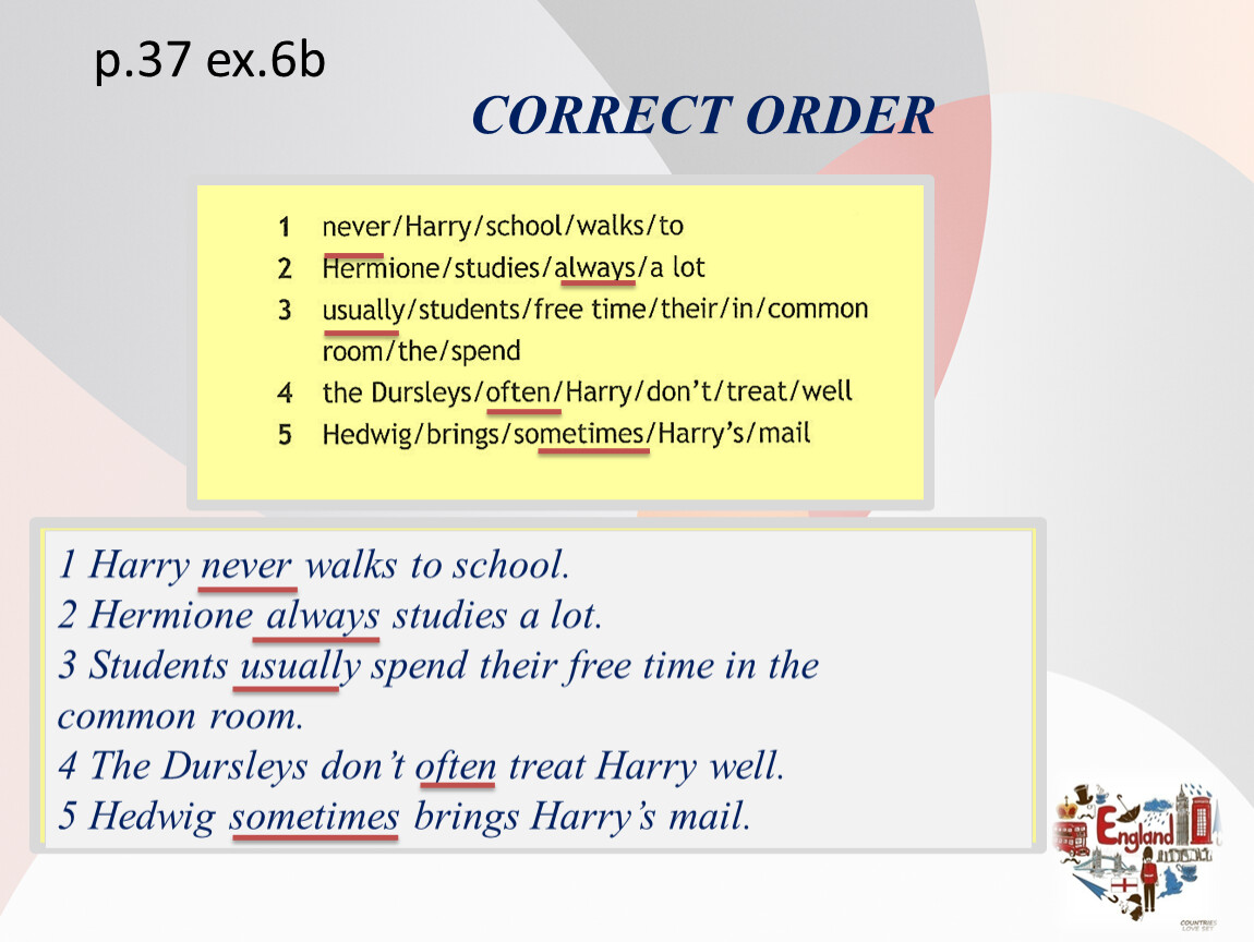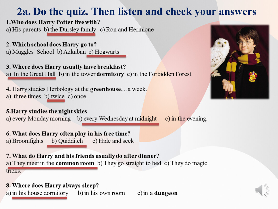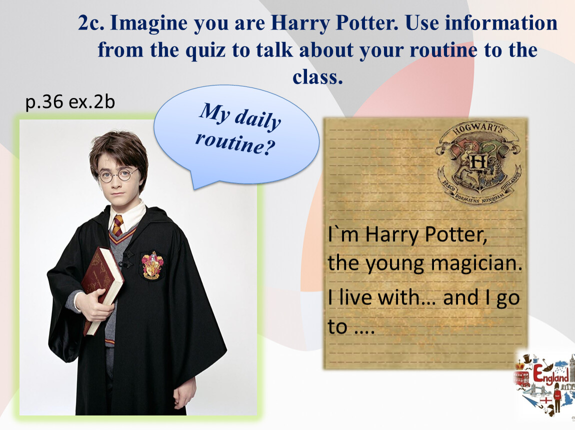 2c. Imagine you are Harry Potter. Use information from the quiz to talk about your routine to the