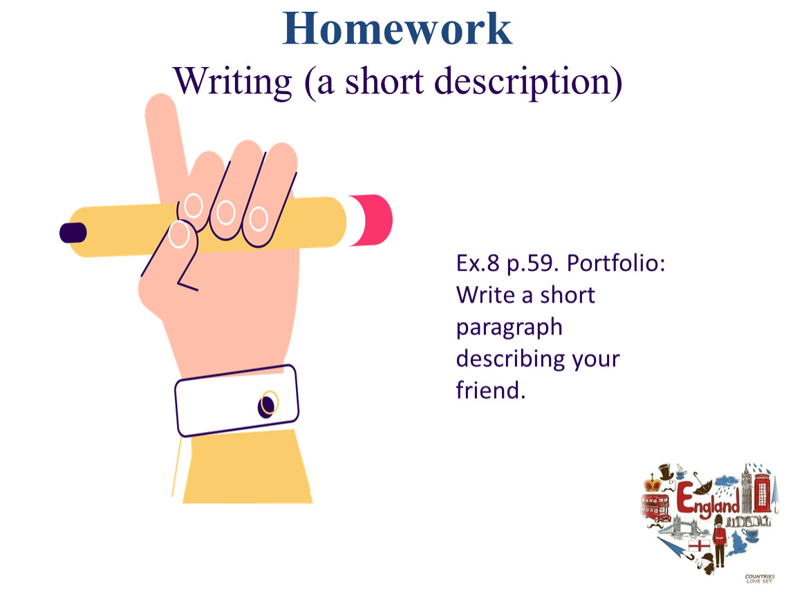 Ex.8 p.59. Portfolio: Write a short paragraph describing your friend.