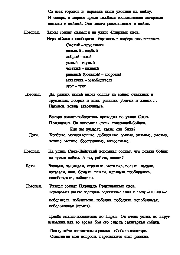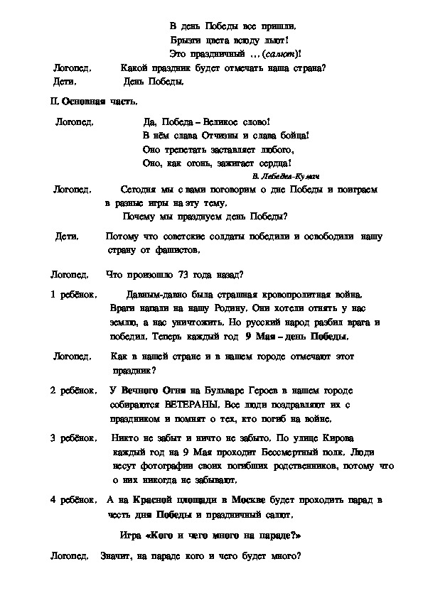 Логопед. Сегодня мы с вами поговорим о дне Победы и поиграем
