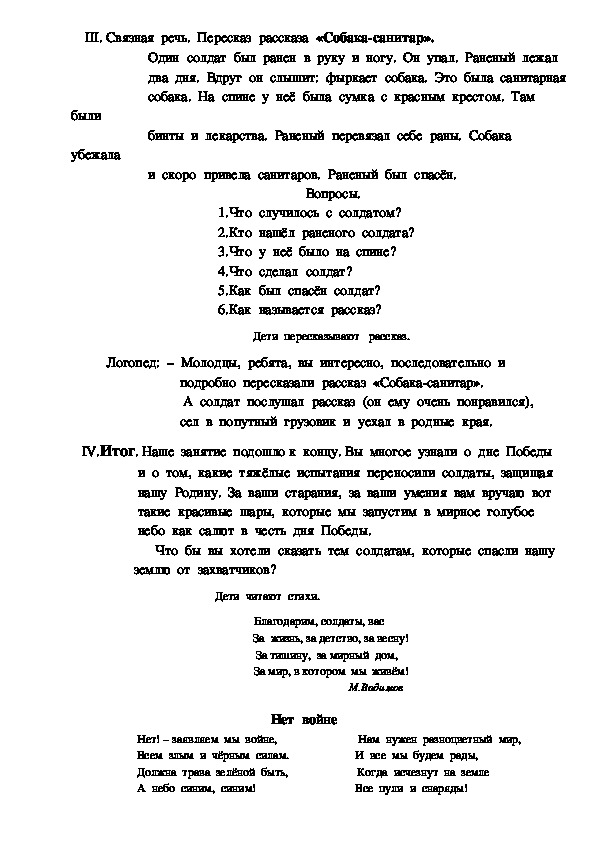 Ответив на мои вопросы, перескажите этот рассказ.III. Связная речь. Пересказ рассказа «Собакасанитар».