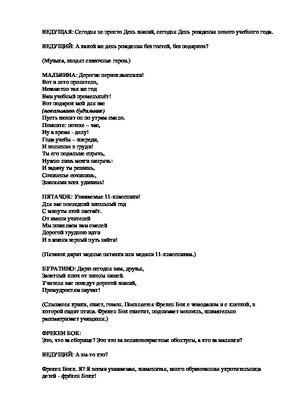 ВЕДУЩИЙ: Нет, уважаемая. Фрекен Бок. Это первоклассники и одиннадцатиклассники