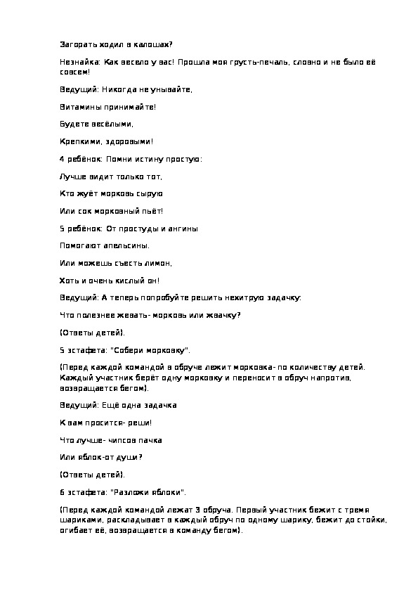 витамин, отнести этому витамину- ребёнку). Ведущий: День здоровья любят