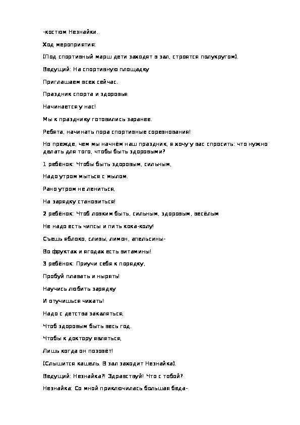 Сценарий дня здоровья в смешанной группе средней-старшей группе. Согласно определению Всемирной организации здравоохранения, здоровье - это состояние полного физического, психического и социального благополучия, а не только отсутствие болезней или физических дефектов.