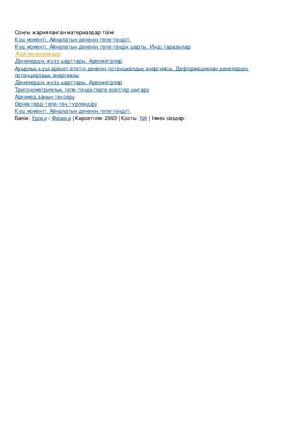 Күш моменті. Айналатын дененің тепетеңдік шарты. Иінді таразылар