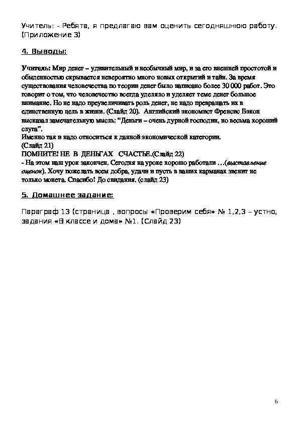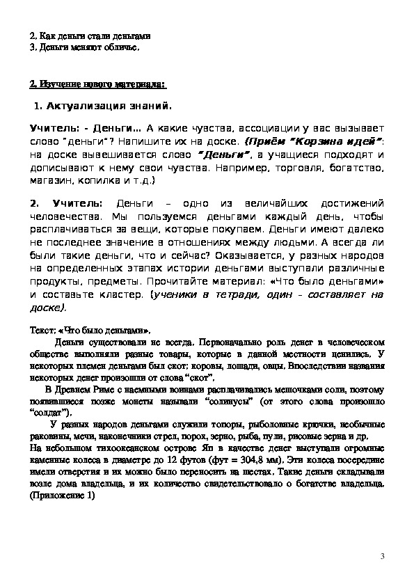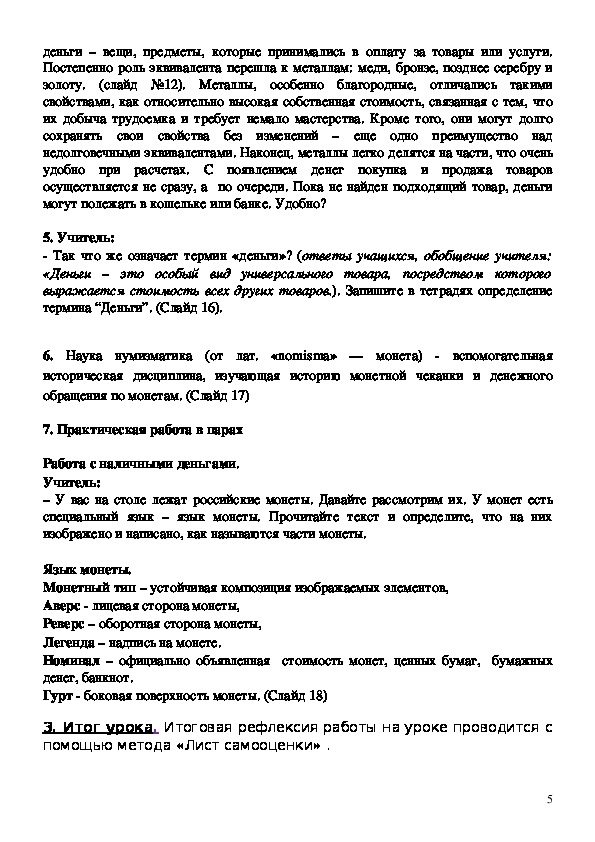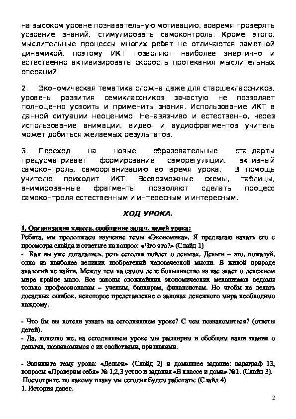 Разработка открытого урока в 7 классе по теме «деньги и их