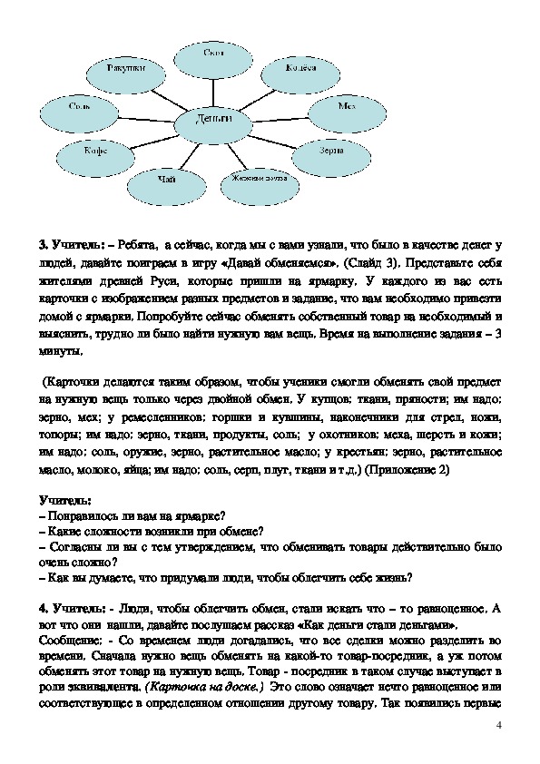 4. Учитель: Люди, чтобы облегчить обмен, стали искать что – то равноценное. А