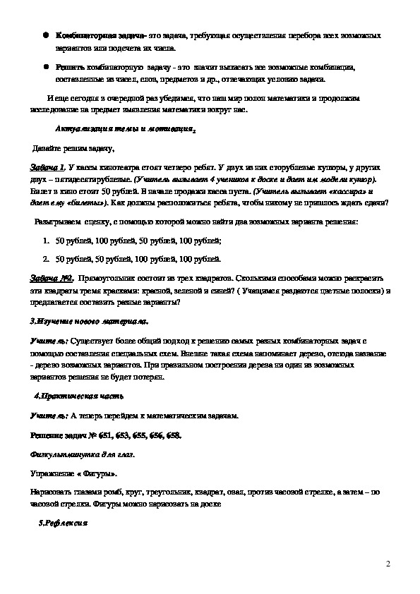 Урок в 5 кассе: «Дерево возможных вариантов»