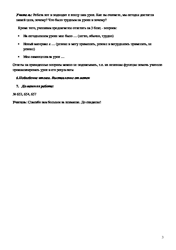 проанализировать урок и его результаты