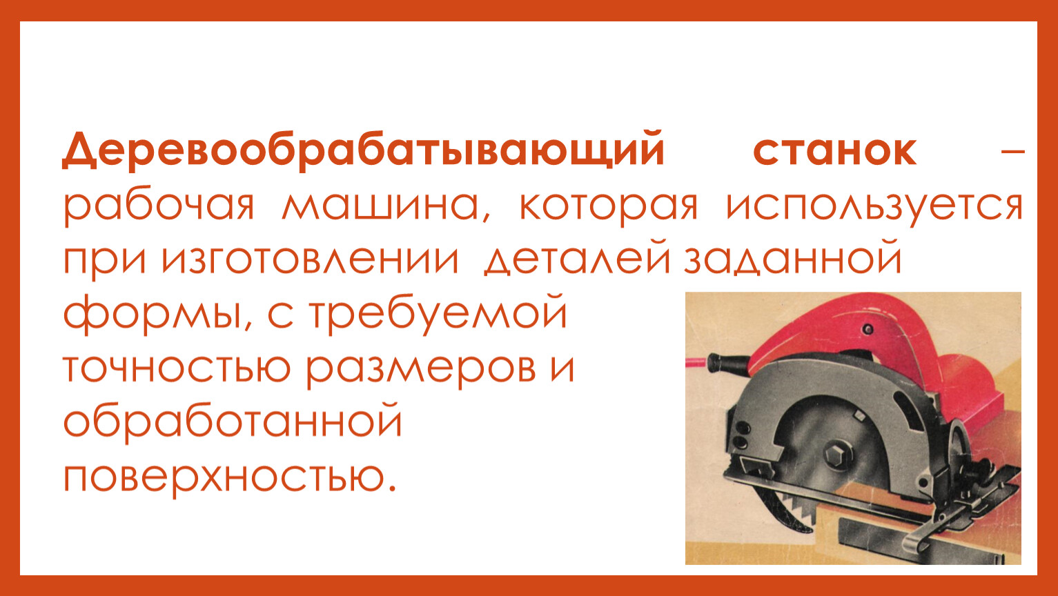 Деревообрабатывающий станок – рабочая машина, которая используется при изготовлении деталей заданной