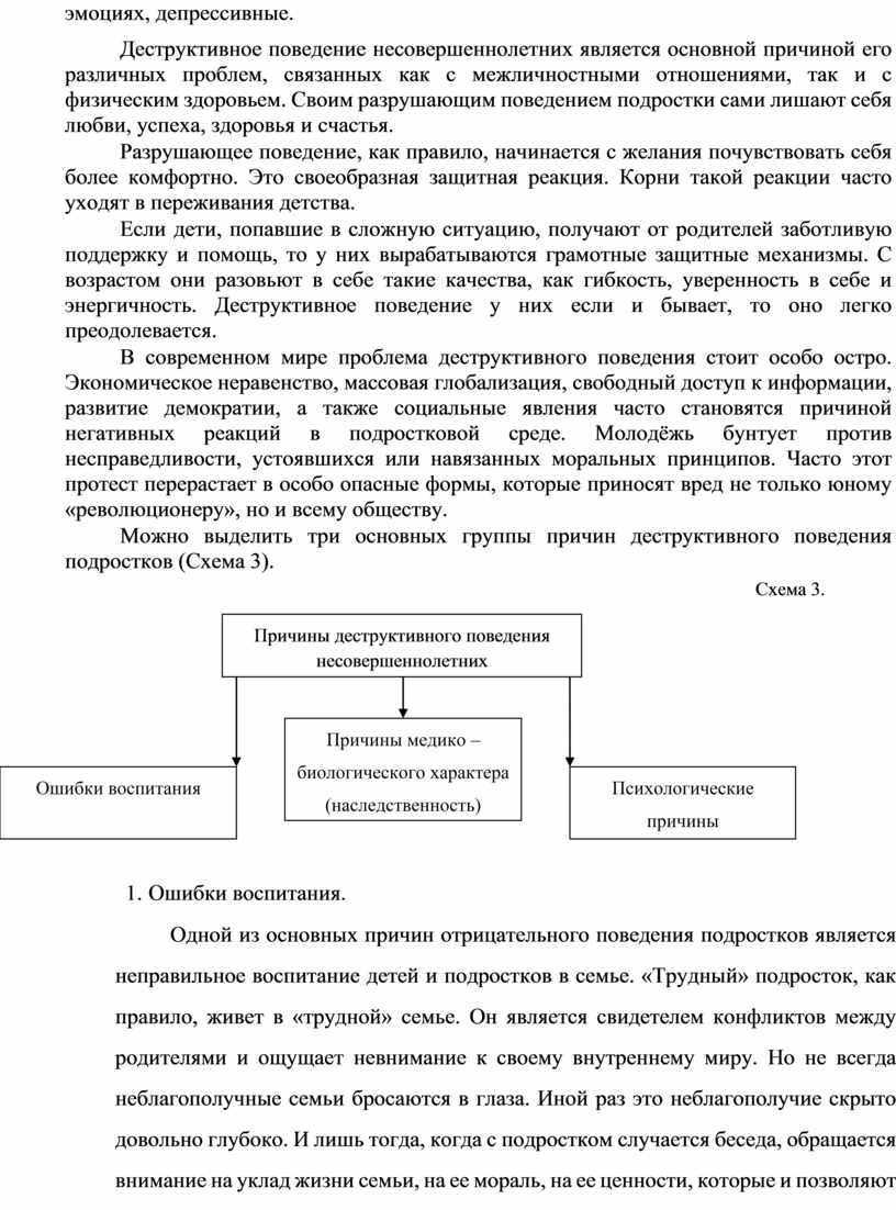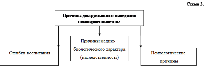 Можно выделить три основных группы причин деструктивного поведения подростков (Схема 3).