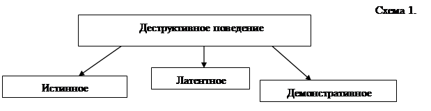 Для детального изучения данной проблемы следует рассмотреть основные виды деструктивного поведения несовершеннолетних (Схема 1).