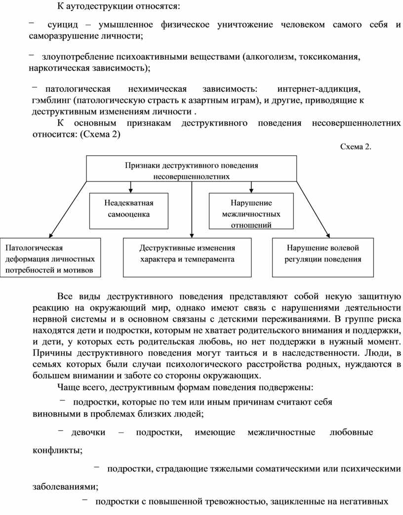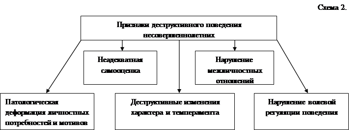 К основным признакам деструктивного поведения несовершеннолетних относится: (Схема 2)
