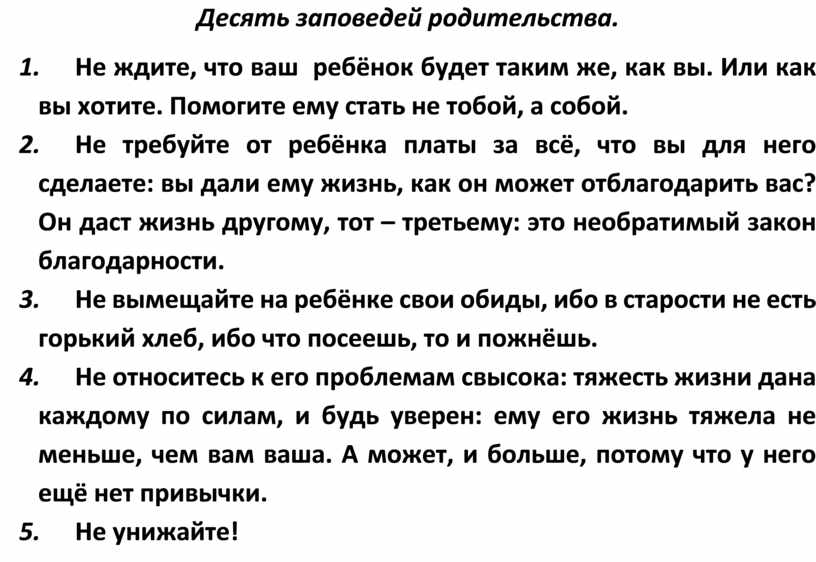 3. Не вымещайте на ребёнке свои обиды, ибо в старости не есть горький хлеб, ибо что посеешь, то и пожнёшь.