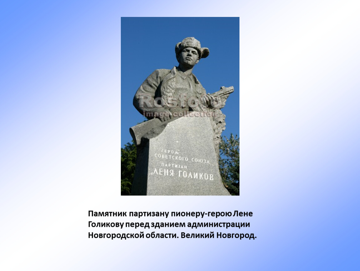 Памятник партизану пионеру-герою Лене Голикову перед зданием администрации Новгородской области. Великий Новгород.