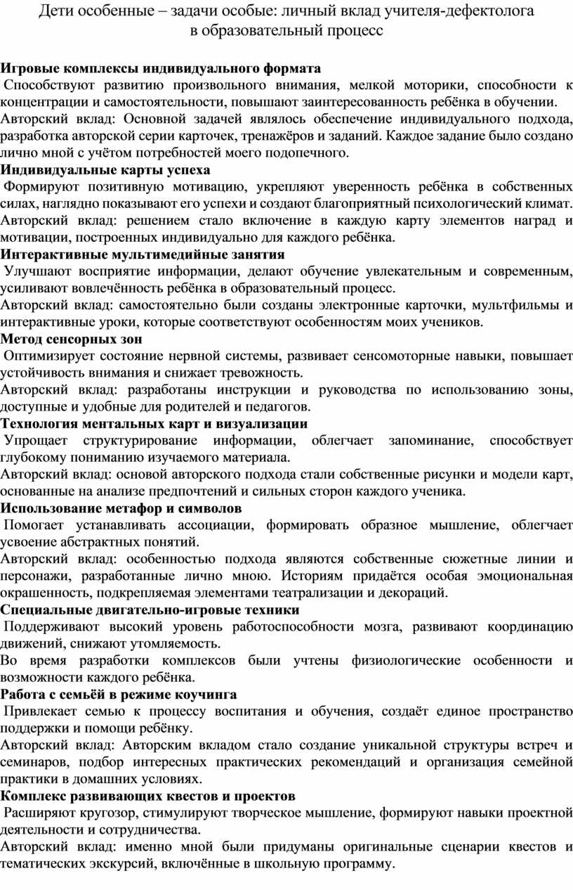 Дети особенные – задачи особые: личный вклад учителя-дефектолога