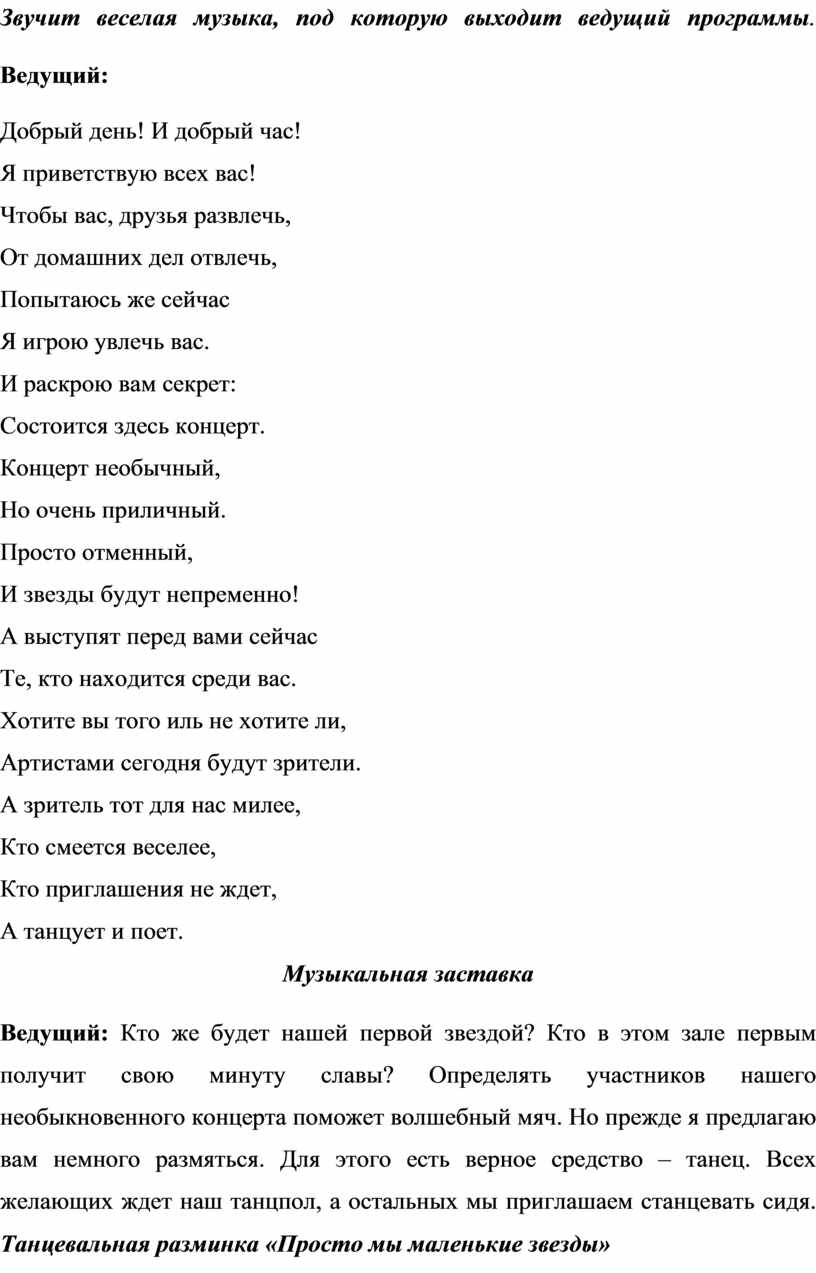 Приложение. Cценарий детской конкурсно-игровой программы «Звездный фейерверк»……………………………………………………………………….12
