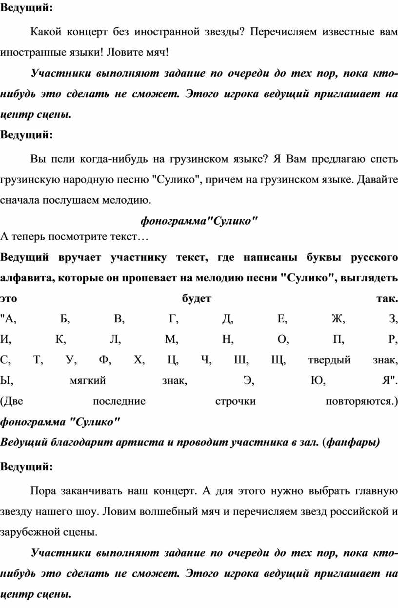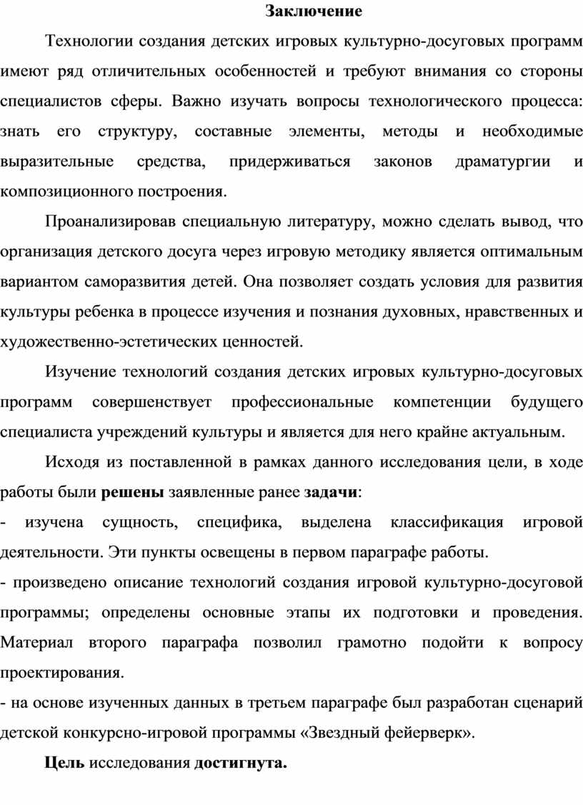 - на основе изученных данных в третьем параграфе был разработан сценарий детской конкурсно-игровой программы «Звездный фейерверк».