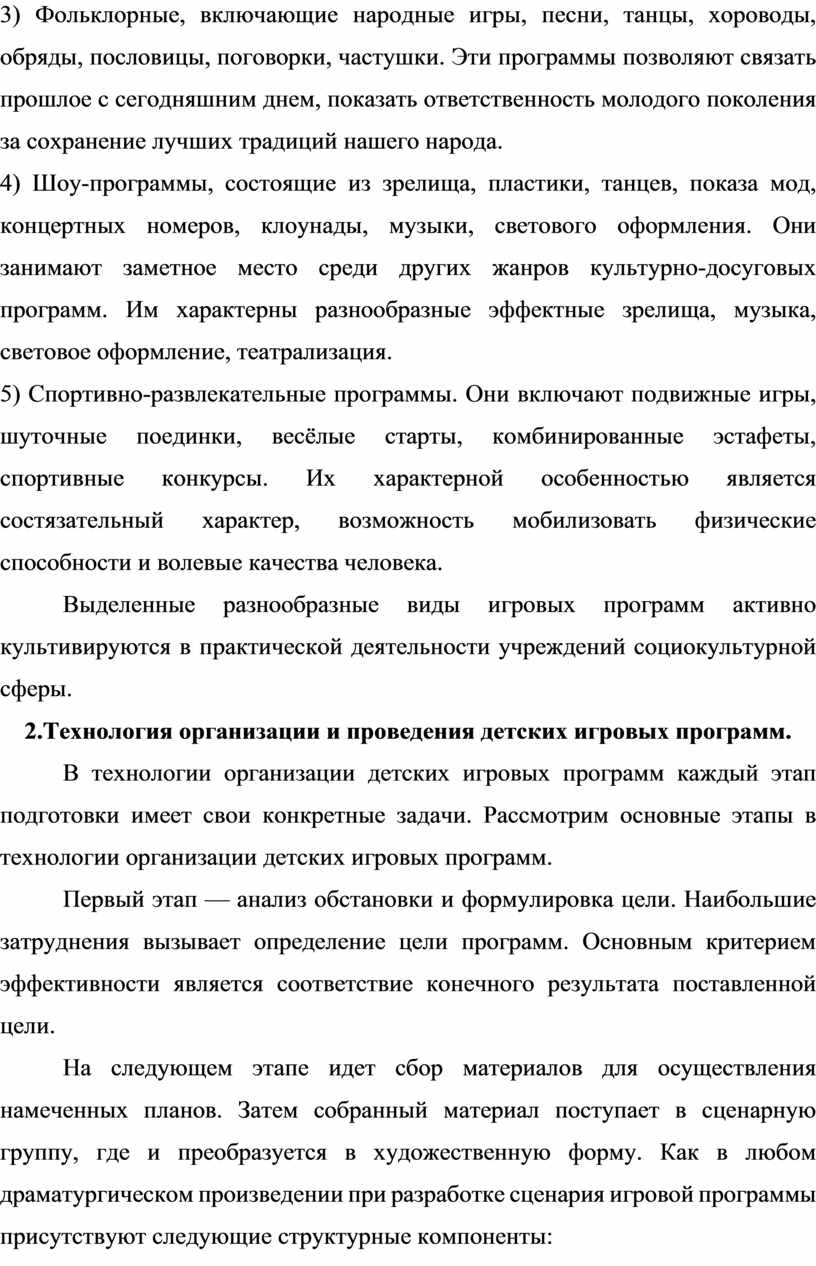Выделенные разнообразные виды игровых программ активно культивируются в практической деятельности учреждений социокультурной сферы.