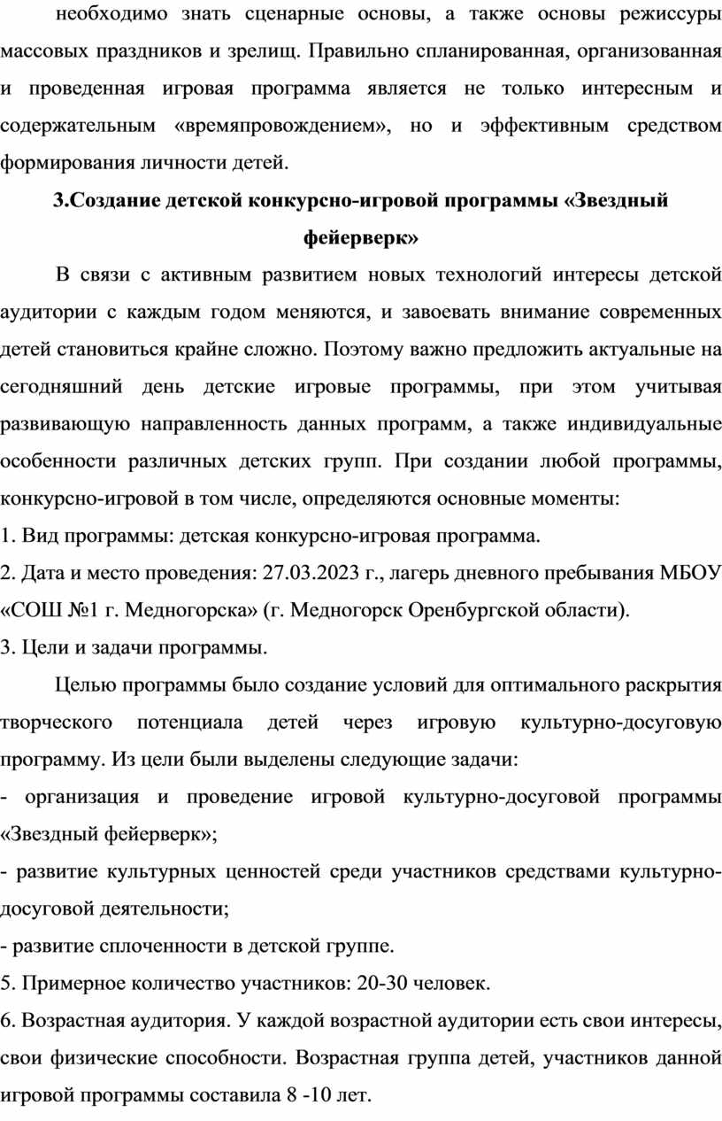 3. Создание детской конкурсно-игровой программы «Звездный фейерверк»..7