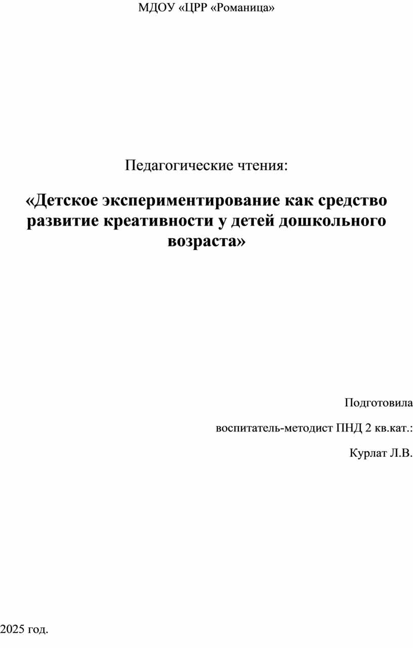 «Детское экспериментирование как средство развитие креативности у детей дошкольного возраста»