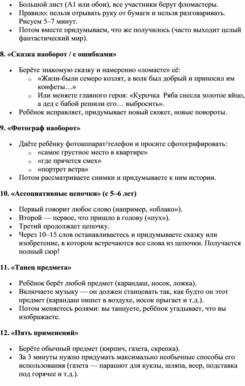 Эти игры работают даже с очень застенчивыми и «не творческими» детьми — главное начать с полного принятия любых идей и не оценивать «красиво/некрасиво». Через 2–3 месяца регулярных занятий уровень креативности и уверенности в своих идеях вырастает в разы.