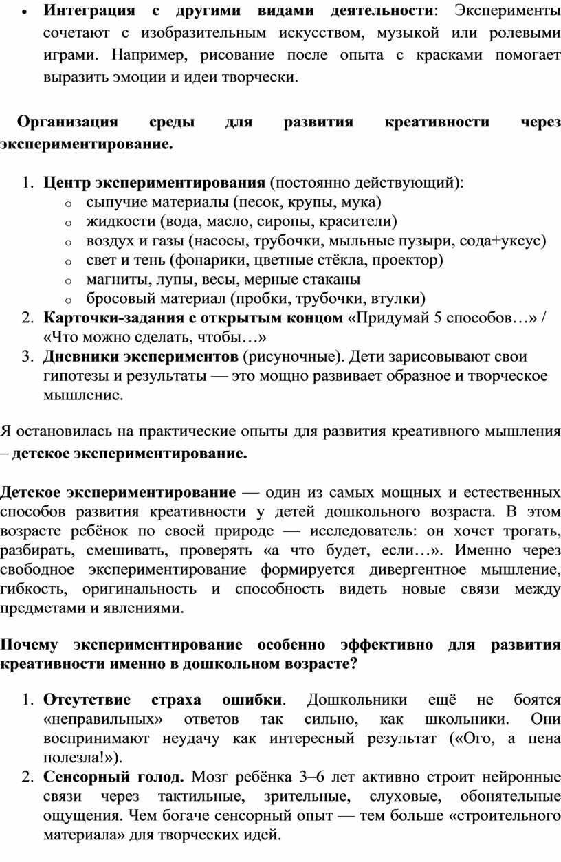 Почему экспериментирование особенно эффективно для развития креативности именно в дошкольном возрасте?