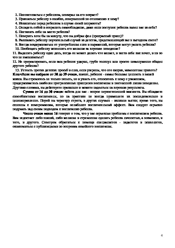 Число очков менее 16 говорит о том, что у вас серьезные проблемы с воспитанием ребенка.