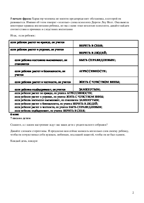 от ребенка, но и от его родителей.5 начало фразы Характер человека во многом предопределяет обстановка, в которой он