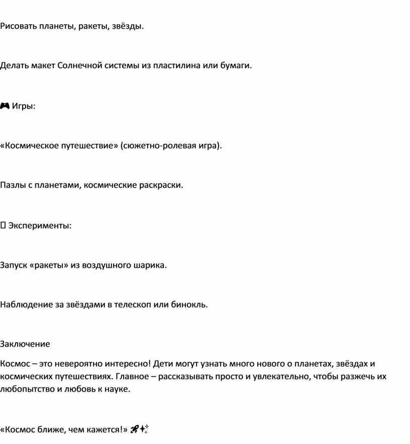 Космос – это бескрайнее пространство, наполненное звёздами, планетами, галактиками и другими удивительными объектами. Дети с ранних лет проявляют интерес к звёздам и ракетам, и наша задача – рассказать им о космосе просто и интересно.