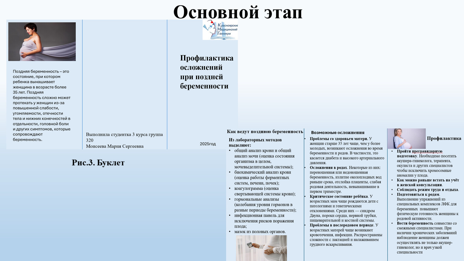 Все мероприятия направлены на повышение уровня знаний пациентов в профилактике осложнений при поздней беременности первородящих.