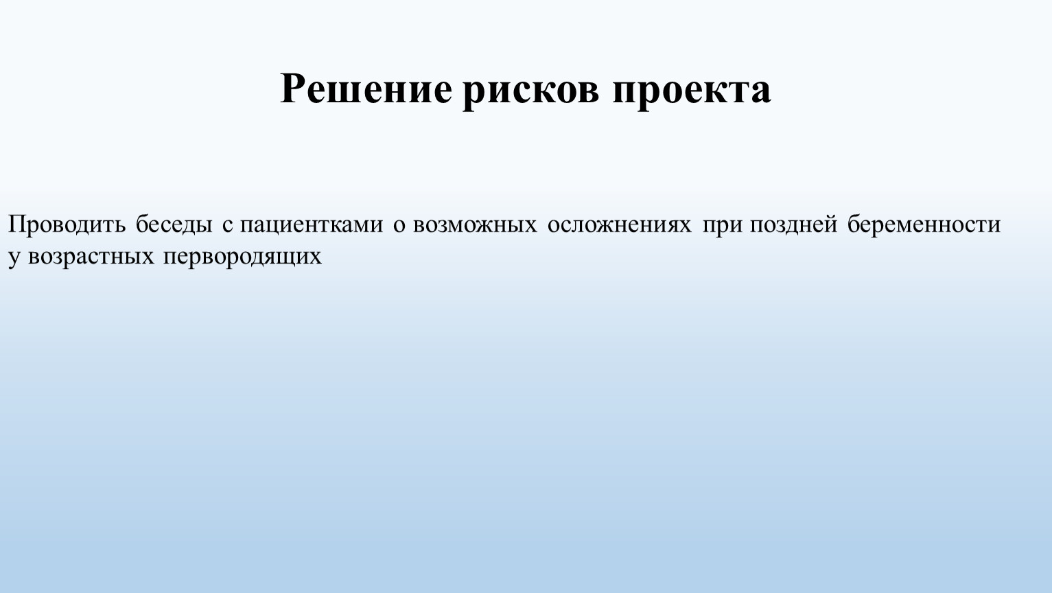 Проводить беседы с пациентками о возможных осложнениях при поздней беременности у возрастных первородящих