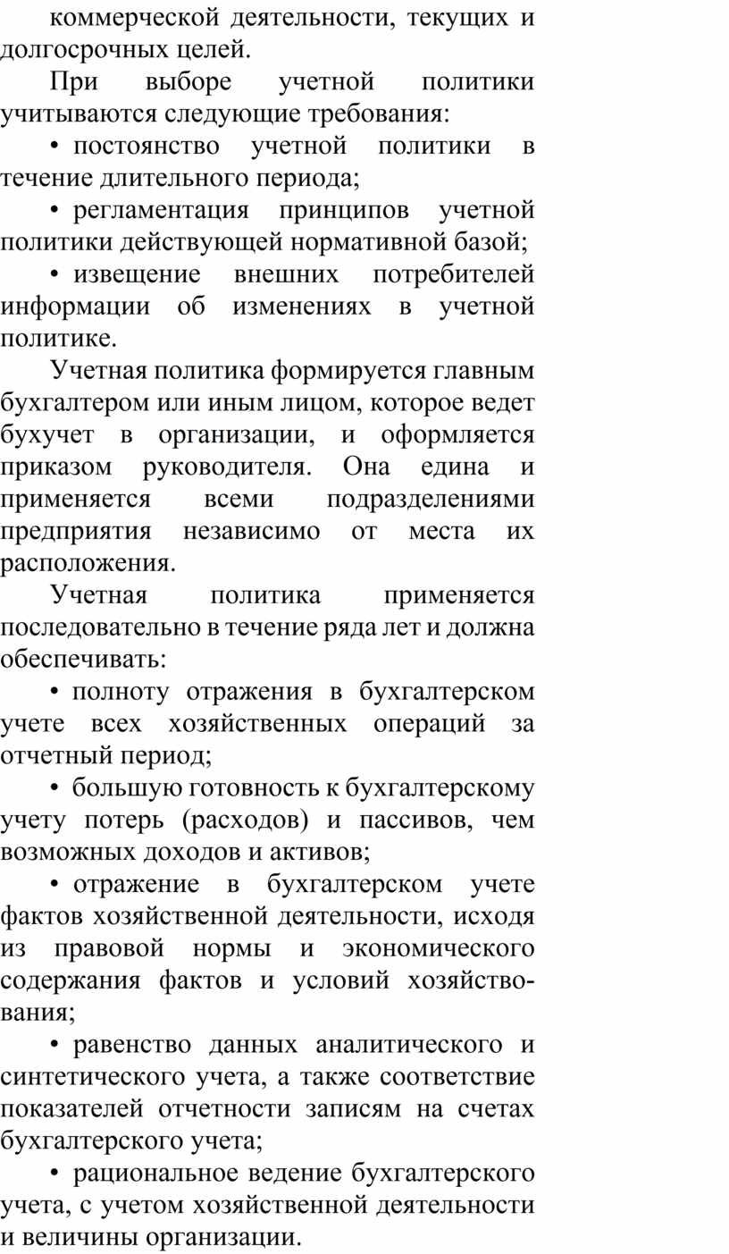 Выбор учетной политики зависит от специфики организации, особенностей организации управления, особенностей коммерческой деятельности, текущих и долгосрочных целей.