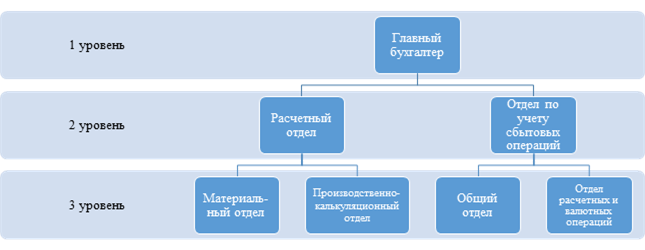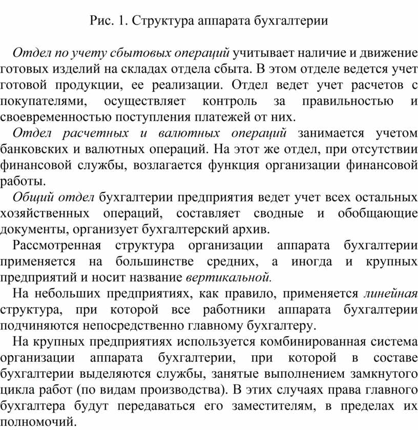 Рассмотренная структура организации аппарата бухгалтерии применяется на большинстве средних, а иногда и крупных предприятий и носит название вертикальной.